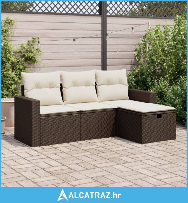 4-dijelni set vrtnih sofa od poliratana s jastucima smeđi - NOVO