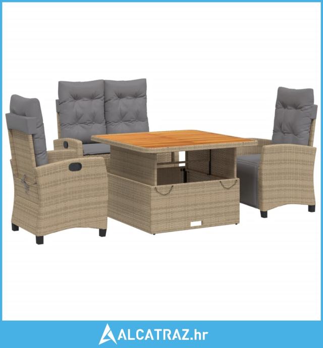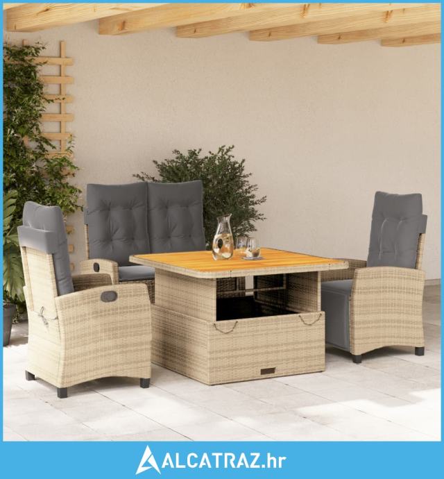 4-dijelni vrtni blagovaonski set od poliratana s jastucima bež - NOVO