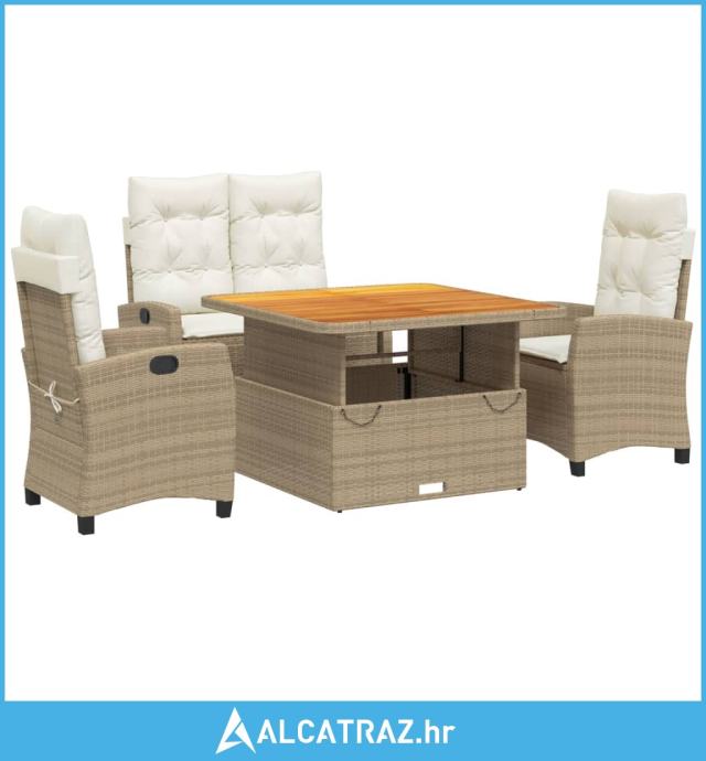 4-dijelni vrtni blagovaonski set od poliratana s jastucima bež - NOVO