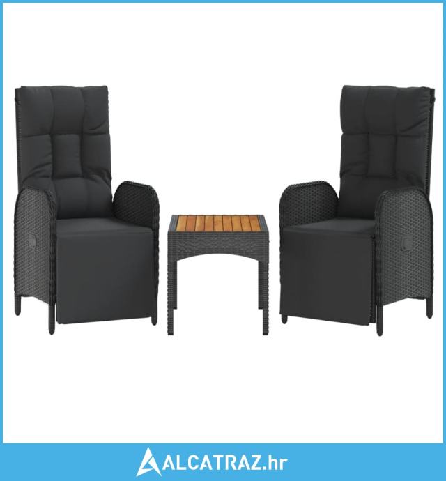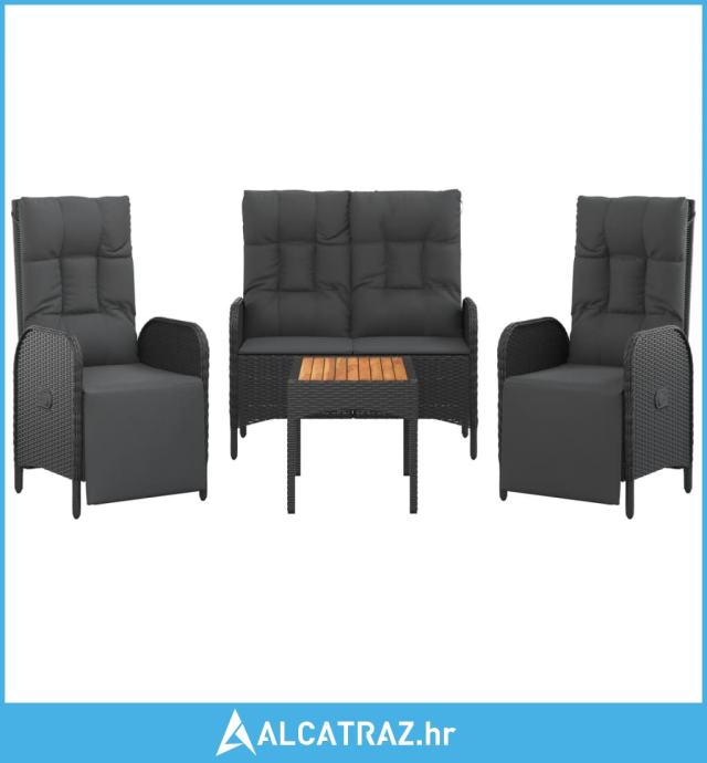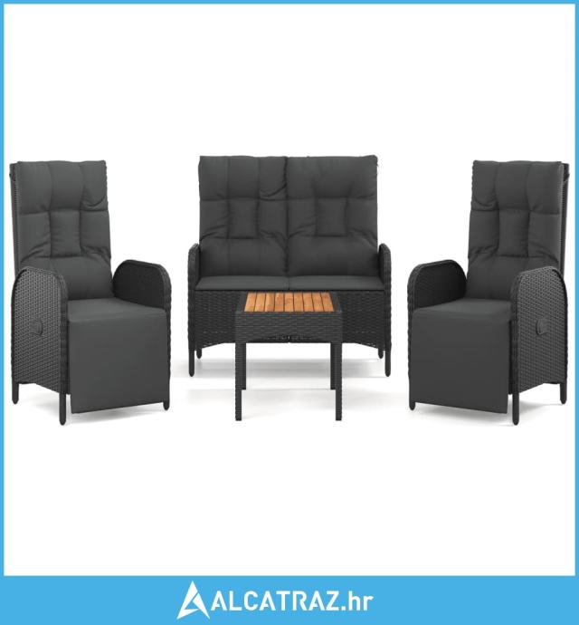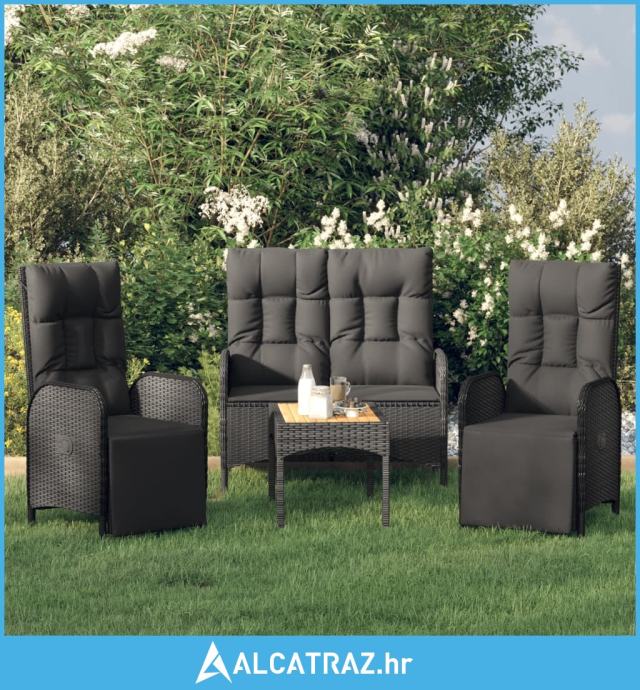 4-dijelni vrtni blagovaonski set od poliratana s jastucima crni - NOVO