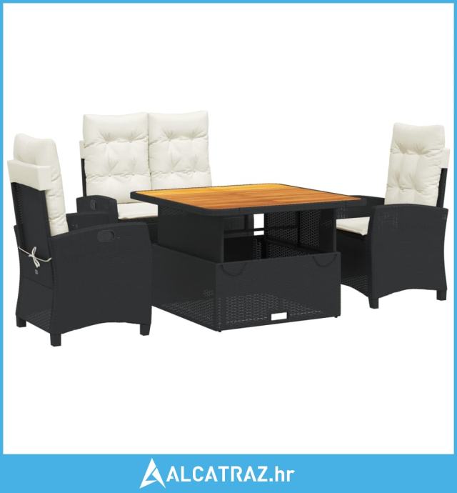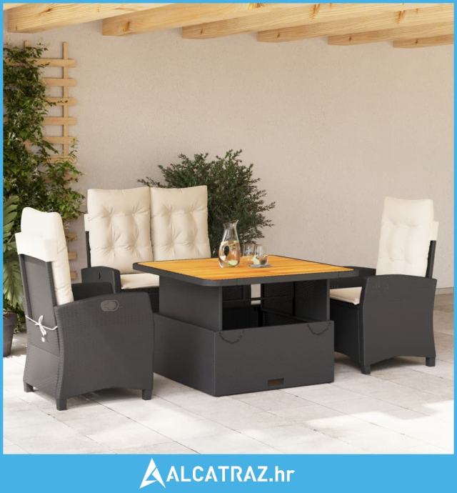 4-dijelni vrtni blagovaonski set od poliratana s jastucima crni - NOVO