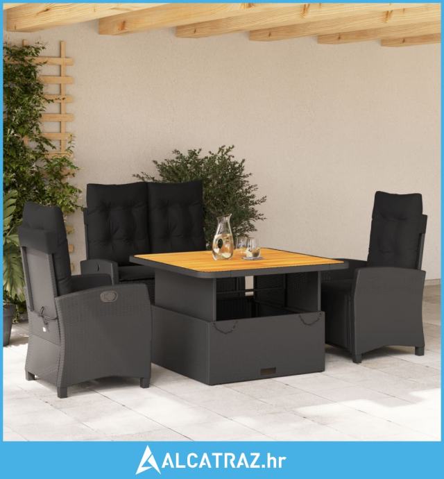 4-dijelni vrtni blagovaonski set od poliratana s jastucima crni - NOVO