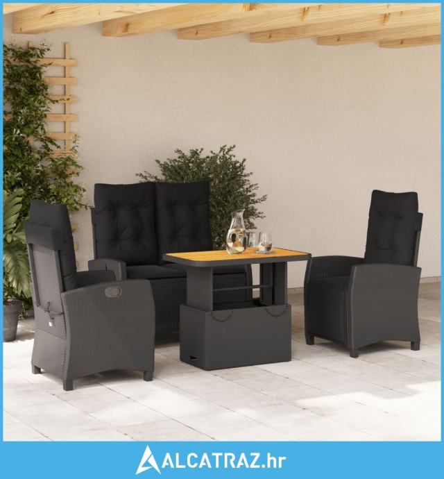4-dijelni vrtni blagovaonski set od poliratana s jastucima crni - NOVO