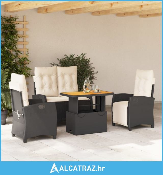 4-dijelni vrtni blagovaonski set od poliratana s jastucima crni - NOVO