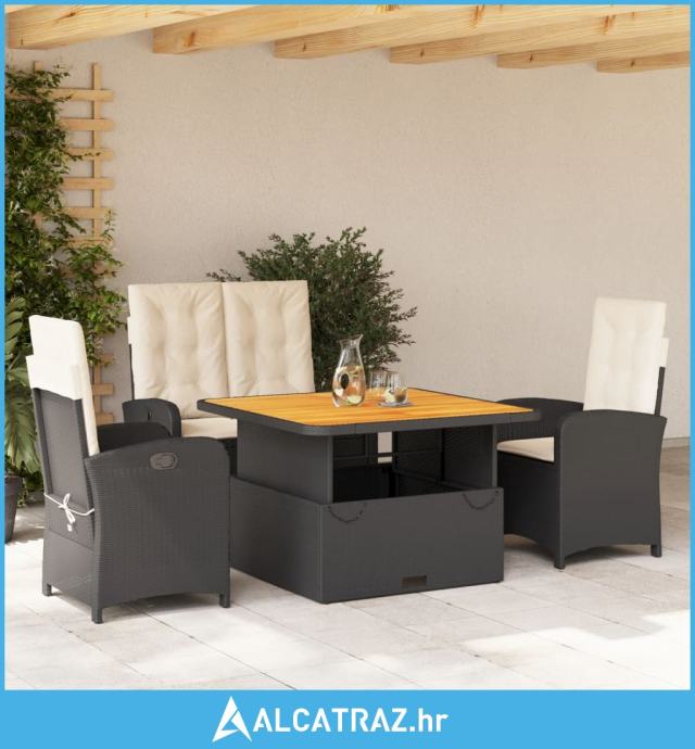 4-dijelni vrtni blagovaonski set od poliratana s jastucima crni - NOVO