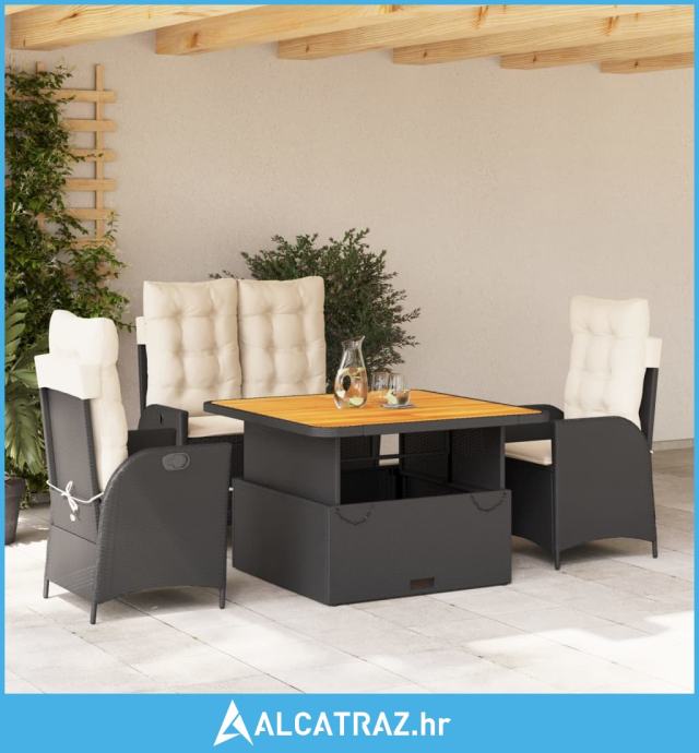 4-dijelni vrtni blagovaonski set od poliratana s jastucima crni - NOVO