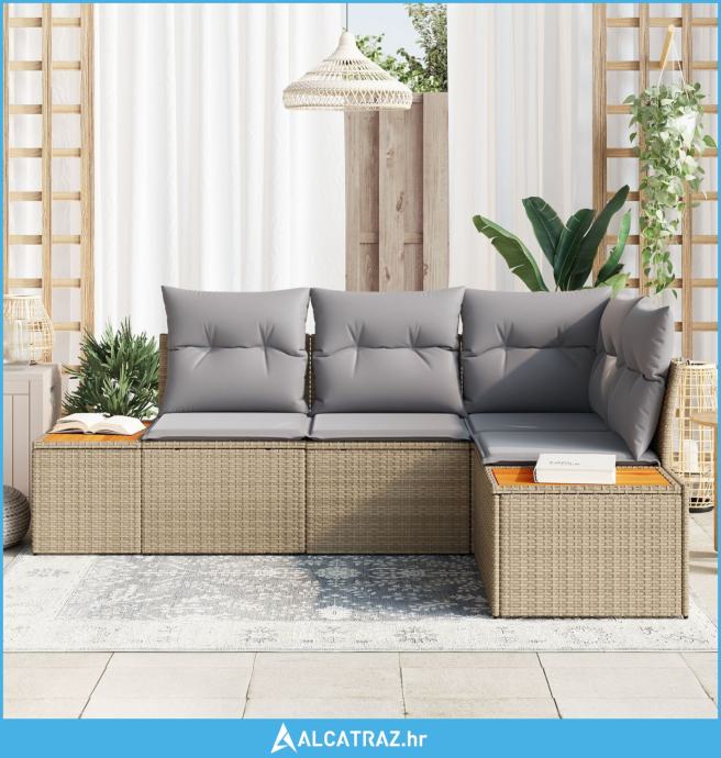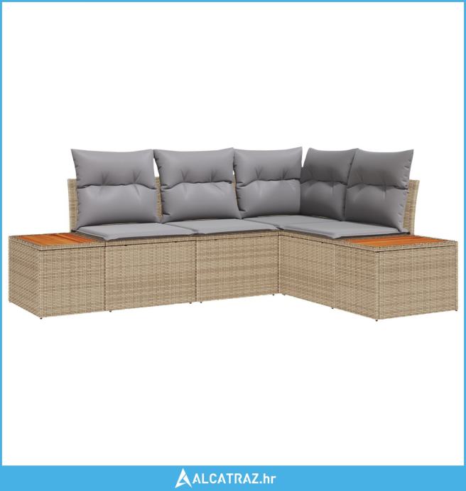 4-dijelni vrtni kauč set s jastučićima Bež Poli Ratan Akacija - NOVO
