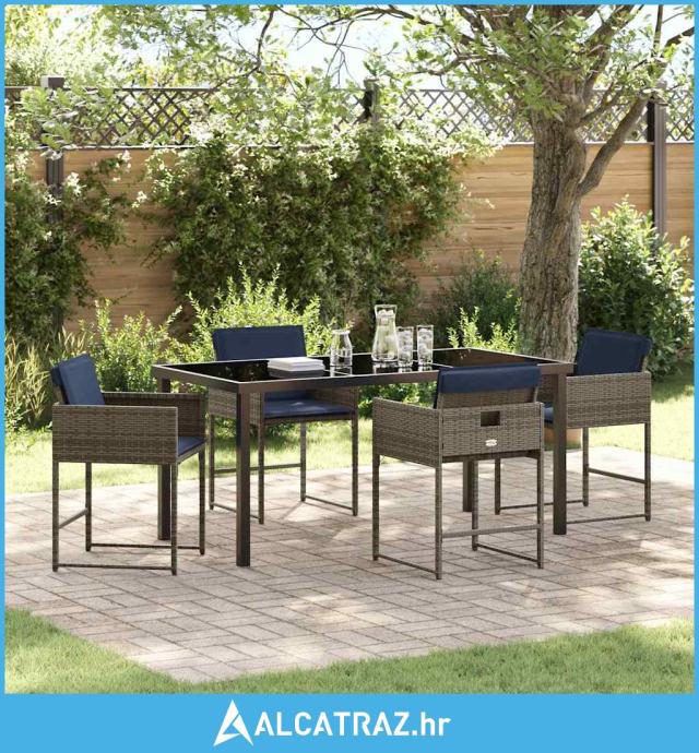 5-dijelna vrtna blagovaonska garnitura s jastučićima siva poli ratan -