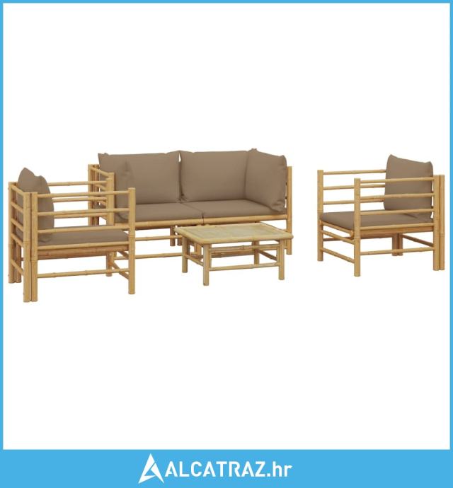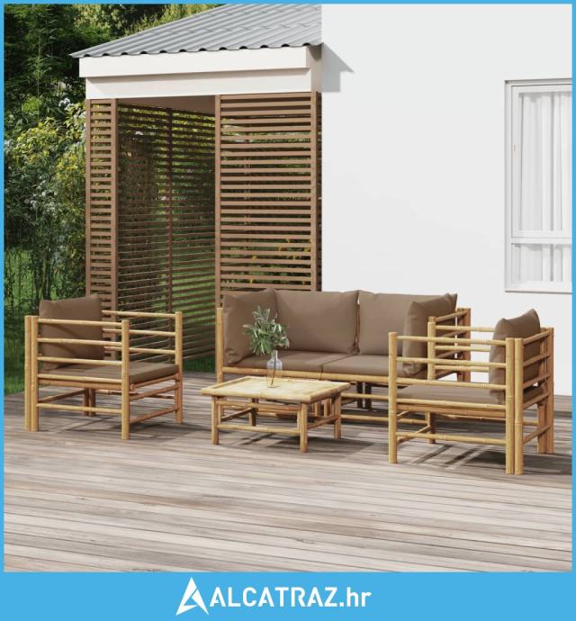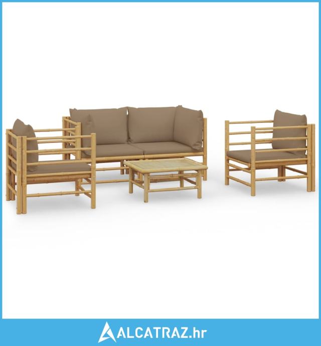 5-dijelna vrtna garnitura od bambusa sa smeđesivim jastucima - NOVO