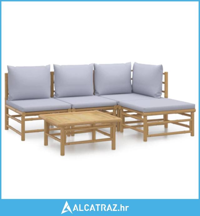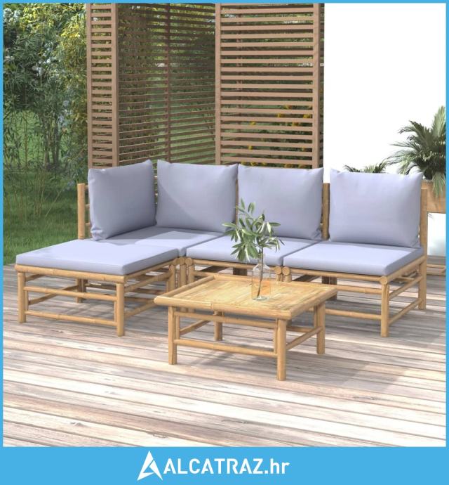 5-dijelna vrtna garnitura od bambusa sa svjetlosivim jastucima - NOVO