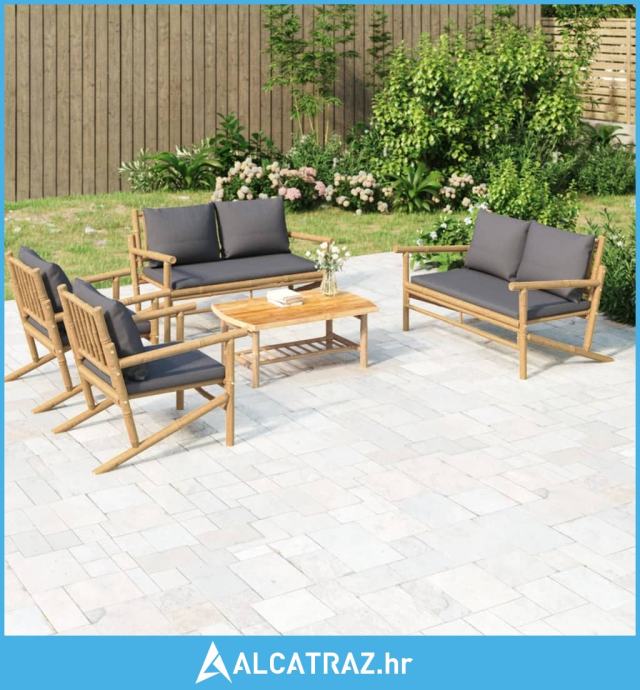 5-dijelna vrtna garnitura od bambusa s tamnosivim jastucima - NOVO
