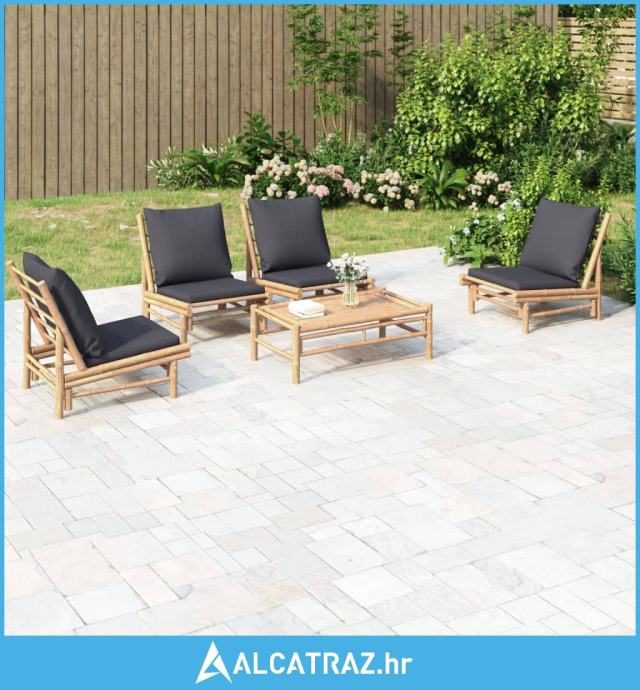 5-dijelna vrtna garnitura od bambusa s tamnosivim jastucima - NOVO