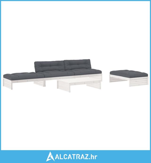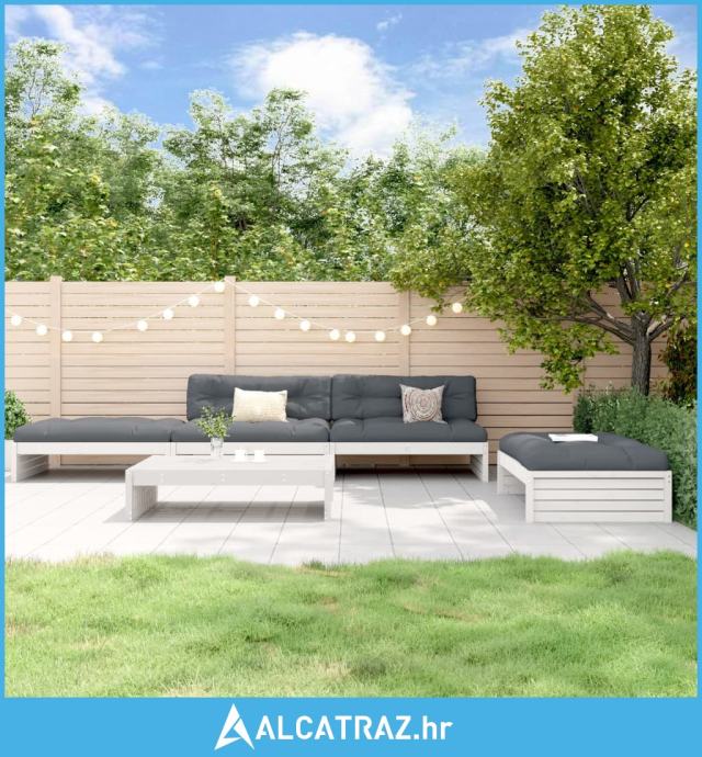 5-dijelna vrtna garnitura s jastucima bijela od masivnog drva - NOVO