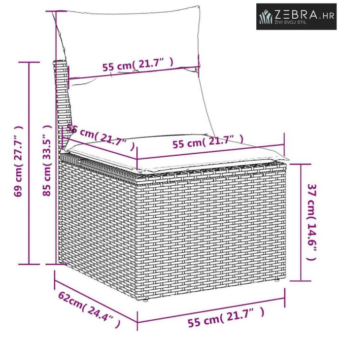 Dimenzije jastuka za sjedalo: 55 x 55 x 3 cm (Š x D x Deb.)