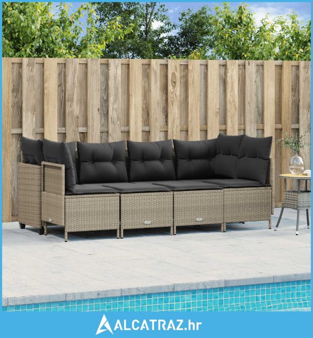 5-dijelna vrtna garnitura s jastucima svijetlosiva poliratan - NOVO