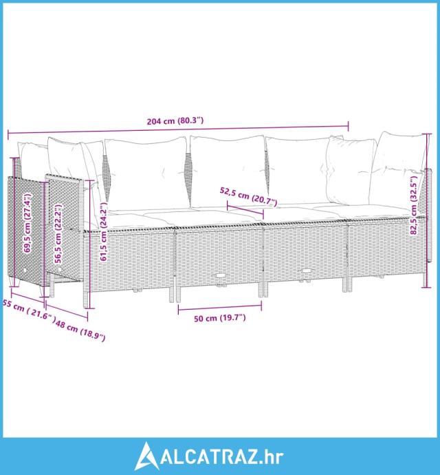 - Dimenzije jastuka za sjedalo (4-sjed sofa): 200 x 52,5 x 3 cm (Š x D x Deb.)