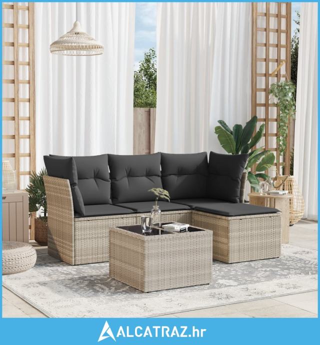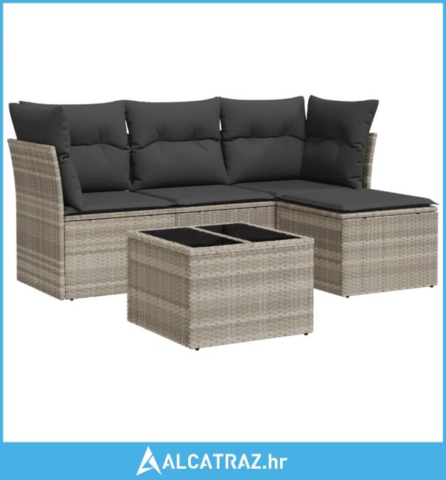 5-dijelna vrtna garnitura s jastucima svijetlosiva poliratan - NOVO