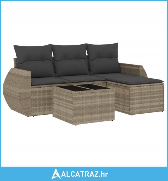 5-dijelna vrtna garnitura s jastucima svijetlosiva poliratan - NOVO