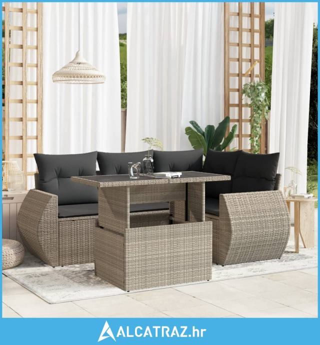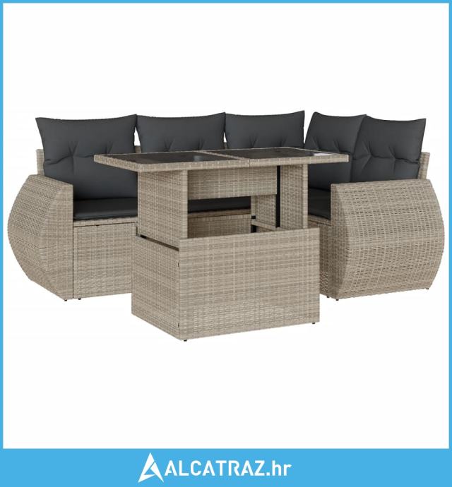 5-dijelna vrtna garnitura s jastucima svijetlosiva poliratan - NOVO