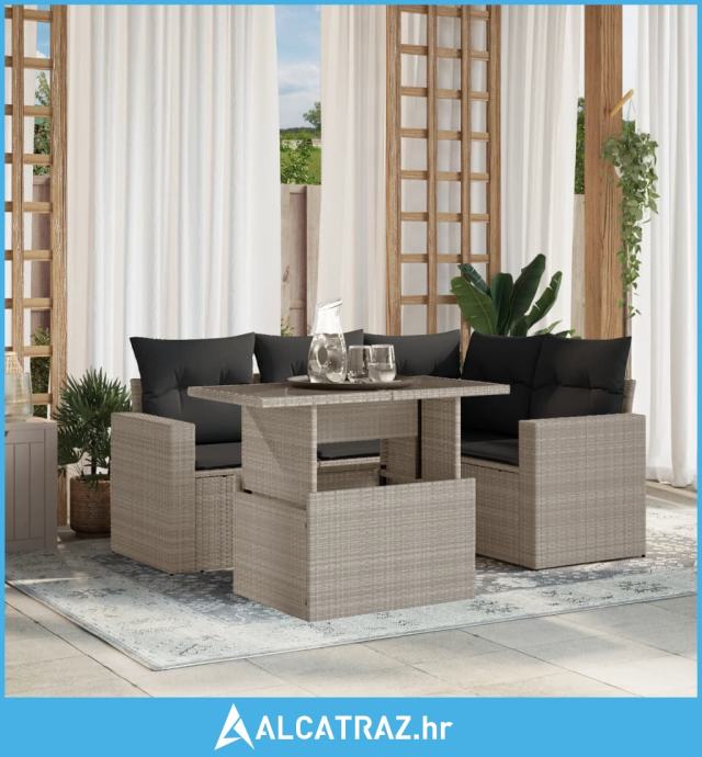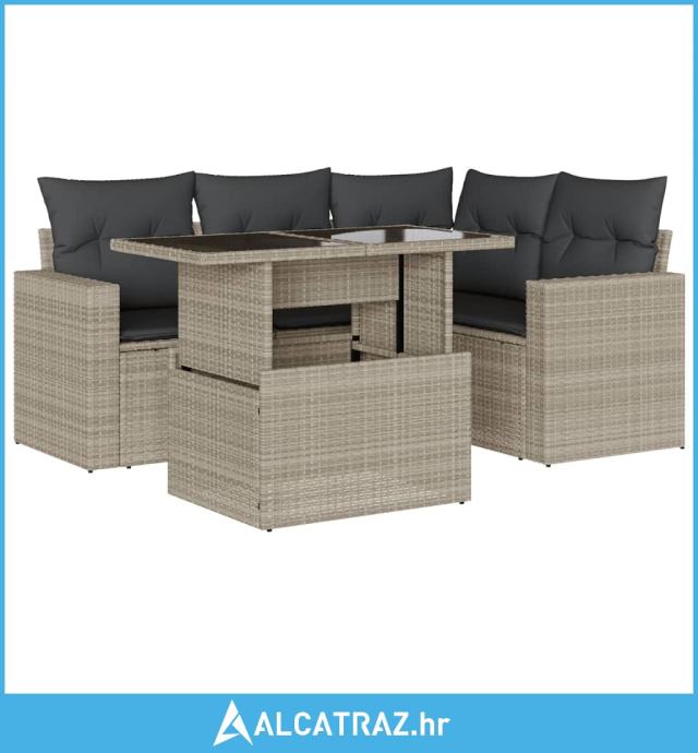 5-dijelna vrtna garnitura s jastucima svijetlosiva poliratan - NOVO
