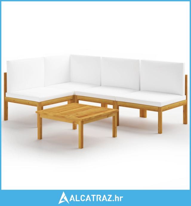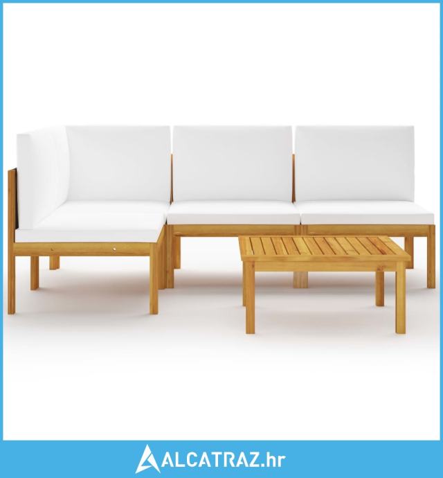 5-dijelna vrtna garnitura s krem jastucima masivno drvo bagrema - NOVO