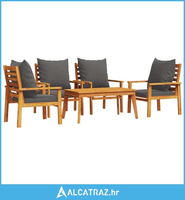 5-dijelna vrtna garnitura od masivnog drva bagrema s jastucima - NOVO