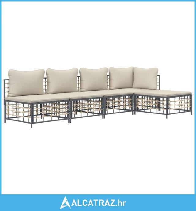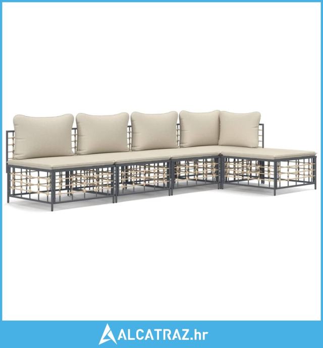 5-dijelna vrtna garnitura od poliratana s jastucima antracit - NOVO