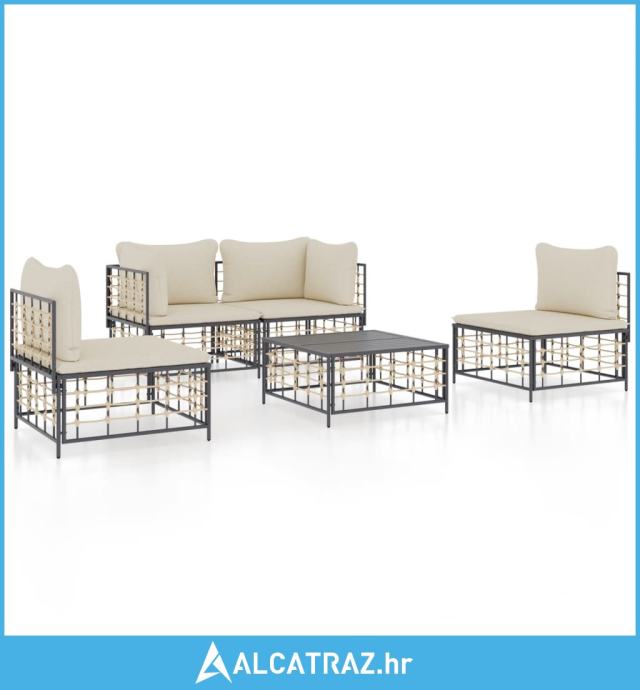 5-dijelna vrtna garnitura od poliratana s jastucima antracit - NOVO