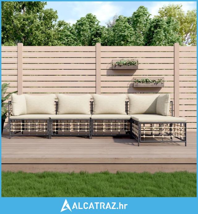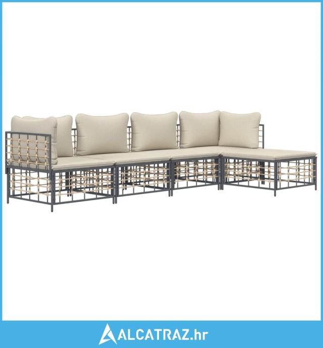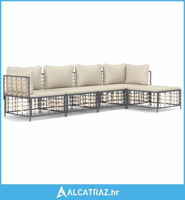 5-dijelna vrtna garnitura od poliratana s jastucima antracit - NOVO