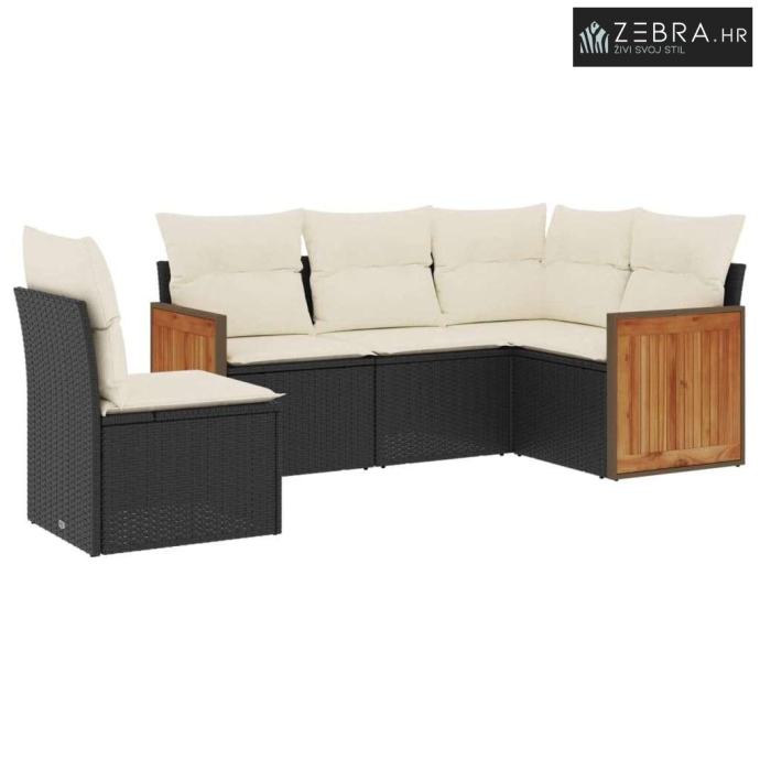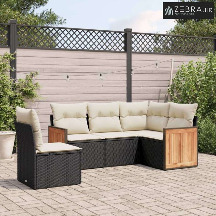 5-dijelna vrtna garnitura od poliratana s jastucima crna - Crna i krem