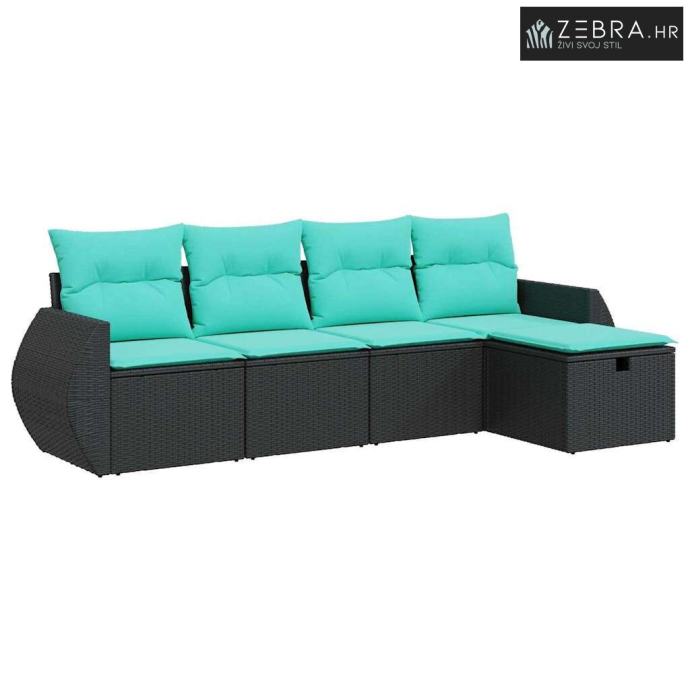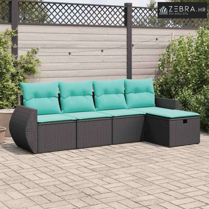 5-dijelna vrtna garnitura od poliratana s jastucima crna - Crna sa spr