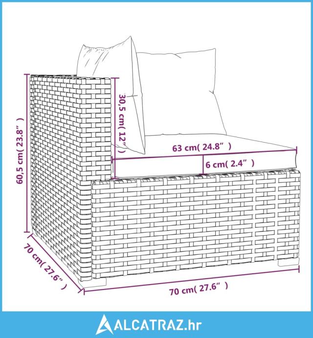- Dimenzije kutne/srednje sofe (svake): 70 x 70 x 60,5 cm (D x Š x V)
