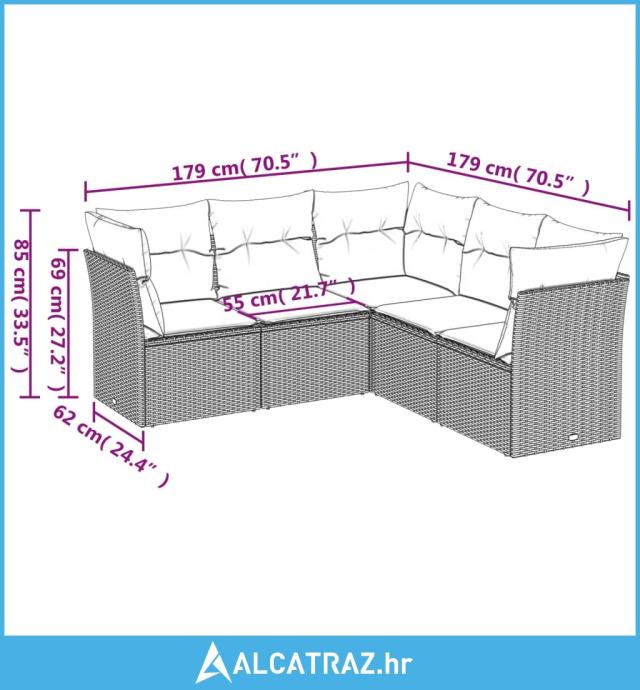 - Ukupne dimenzije sofe: 179 x 179 x 69 cm (Š x D x V)