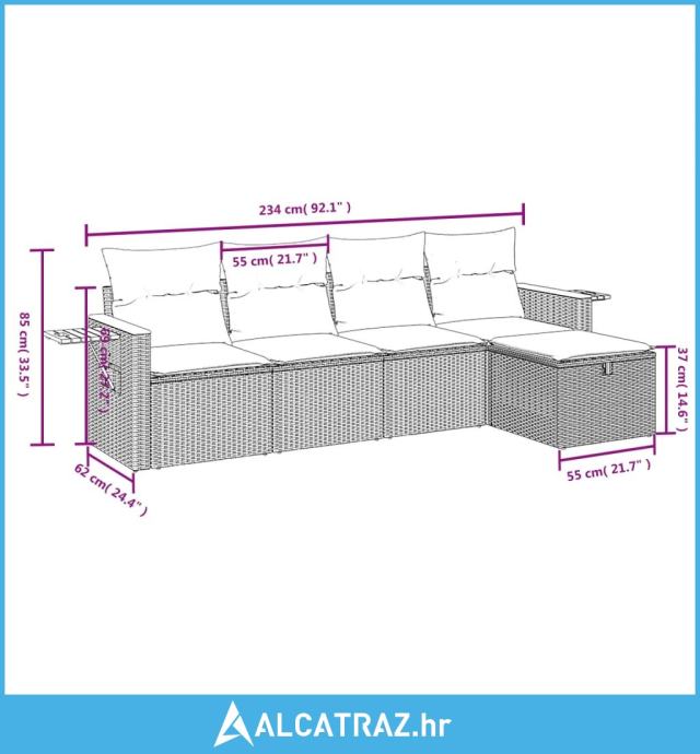 - Dimenzije jastuka za naslon: 55 x 45 x 13 cm (D x Š x Deb.)