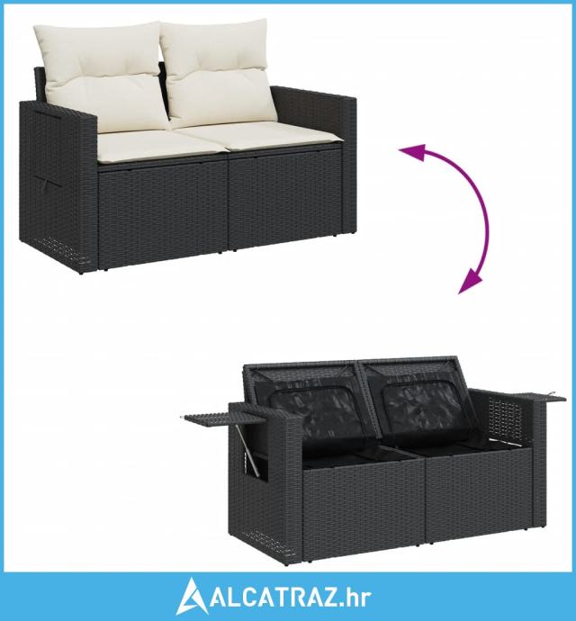 - Funkcija pohrane s vodootpornom vrećom: Vrtni namještaj ima prostor za pohranu ispod sjedala, zajedno s vodootpornom vrećom za spremanje jastuka, igračaka i drugih predmeta. Unutarnja vreća može se snažno pričvrstiti za vanjski namještaj pomoću kopči na čičak za dodatnu stabilnost.