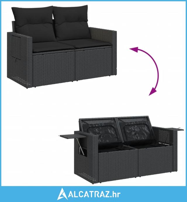 - Funkcija pohrane s vodootpornom vrećom: Vrtni namještaj ima prostor za pohranu ispod sjedala, zajedno s vodootpornom vrećom za spremanje jastuka, igračaka i drugih predmeta. Unutarnja vreća može se snažno pričvrstiti za vanjski namještaj pomoću kopči na čičak za dodatnu stabilnost.