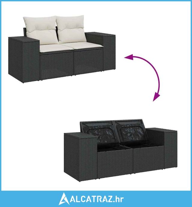 - Funkcija pohrane s vodootpornom vrećom: Vrtni namještaj ima prostor za pohranu ispod sjedala, zajedno s vodootpornom vrećom za spremanje jastuka, igračaka i drugih predmeta. Unutarnja vreća može se snažno pričvrstiti za vanjski namještaj pomoću kopči na čičak za dodatnu stabilnost.