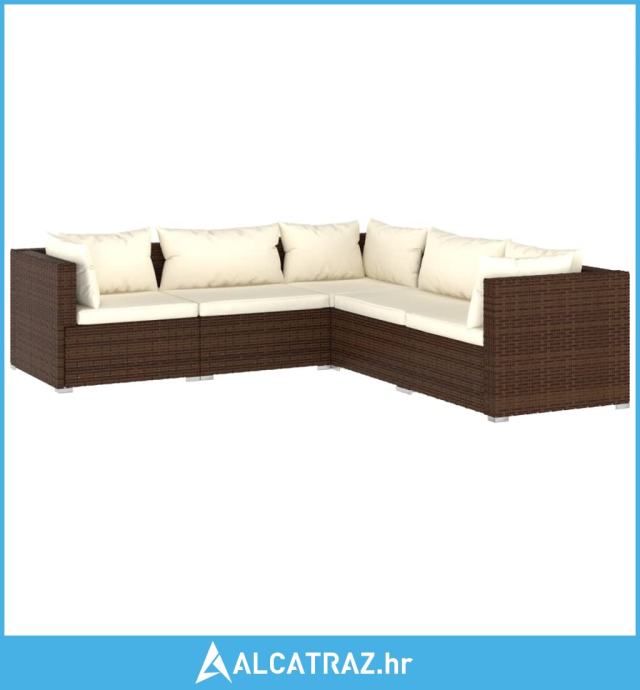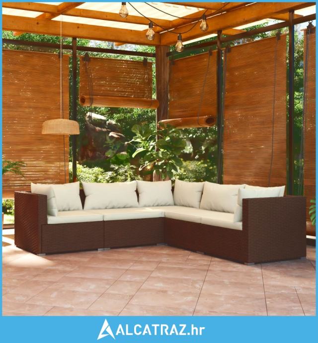 5-dijelna vrtna garnitura od poliratana s jastucima smeđa - NOVO