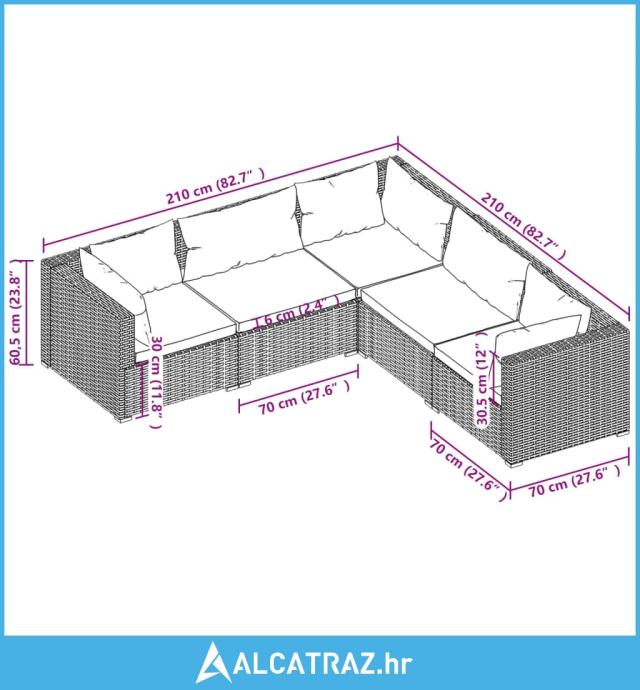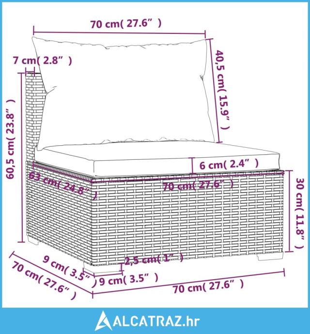 - Dimenzije kutne/srednje sofe (svake): 70 x 70 x 60,5 cm (D x Š x V)