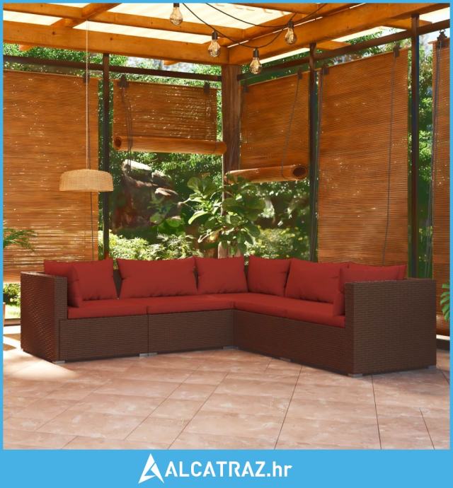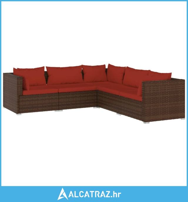 5-dijelna vrtna garnitura od poliratana s jastucima smeđa - NOVO