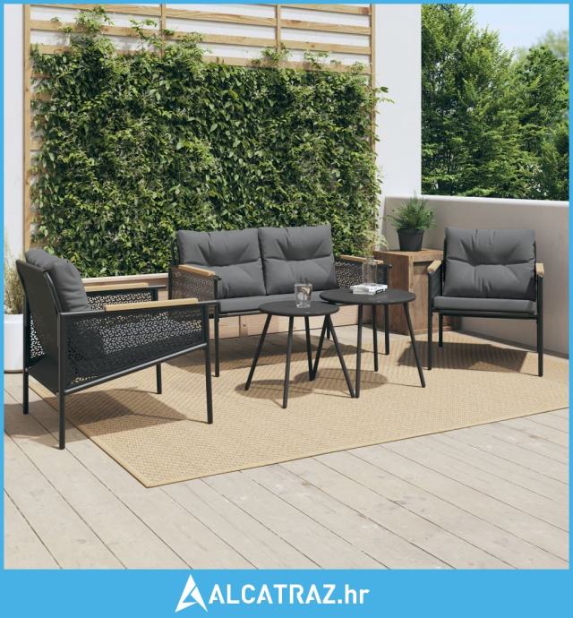 5-dijelni set balkonskog namještaja s jastucima crni čelični - NOVO