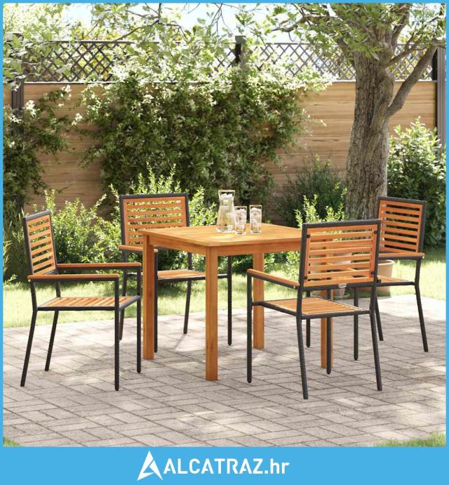 5-dijelni set za blagovanje u vrtu crna poli rattan akacija - NOVO