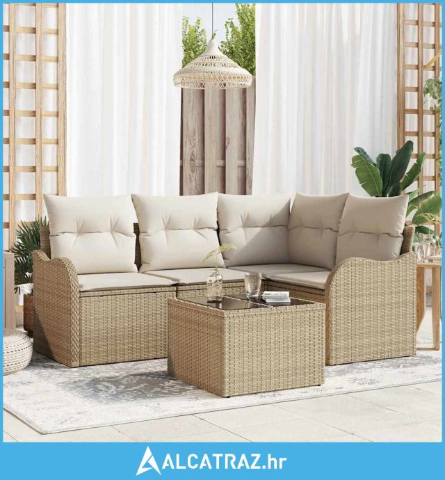 5-dijelni set kauča za vrt s jastučićima smešnog poli ratana - NOVO