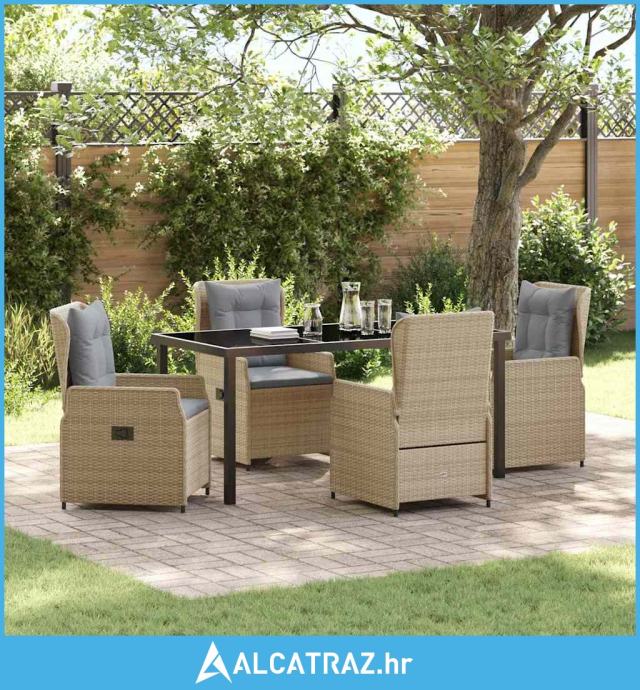 5-dijelni set za obedovanje u vrtu bež poli ratan, vrtni stol crni 160
