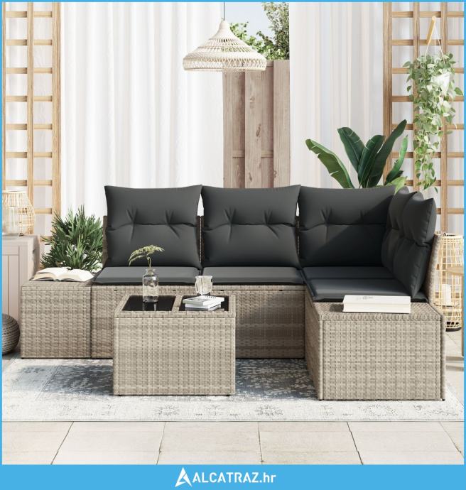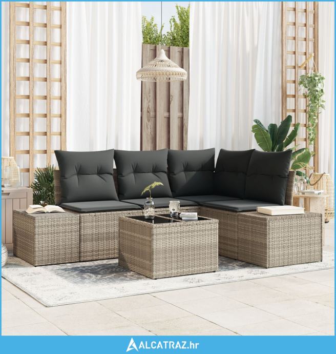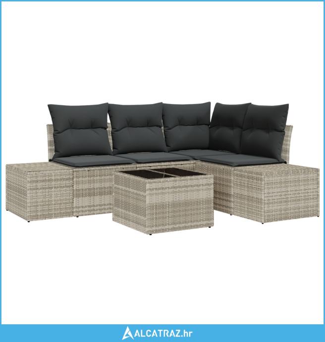 5-dijelni set vrtnih kauča s jastučićima svjetlosivi poli ratan - NOVO