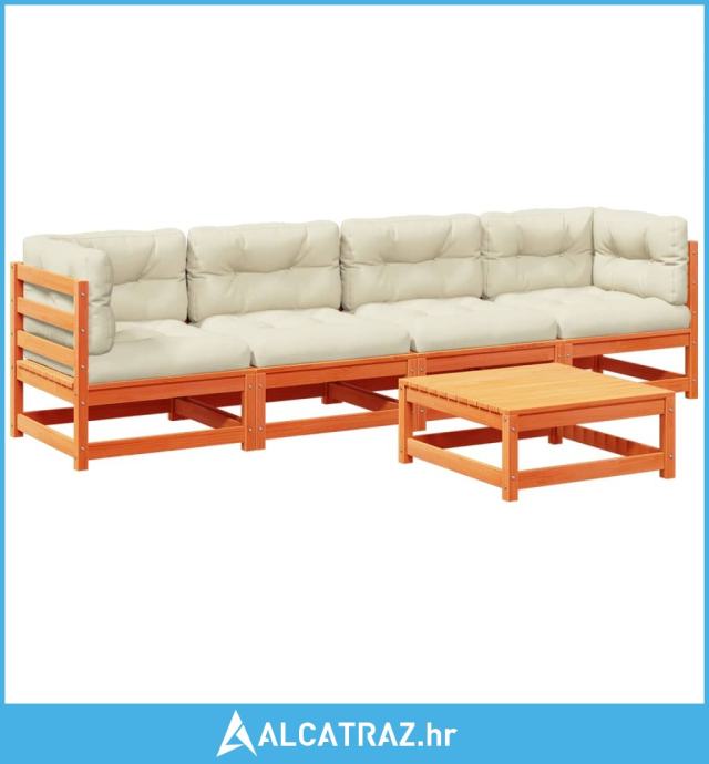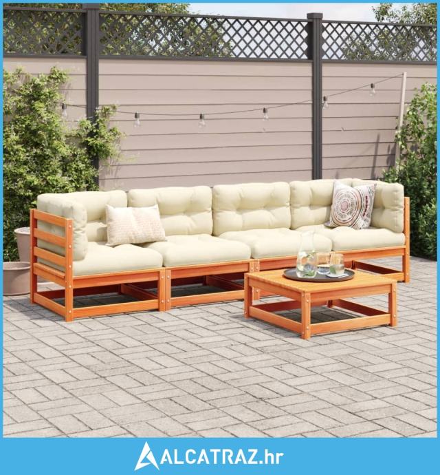 5-dijelni set vrtnih sofa s jastucima voštano smeđi od borovine - NOVO