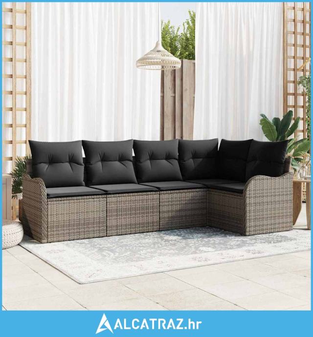 5-dijelni set vrtnog kauča s jastučićima Sivi Poliratan, Kauč za vrt z