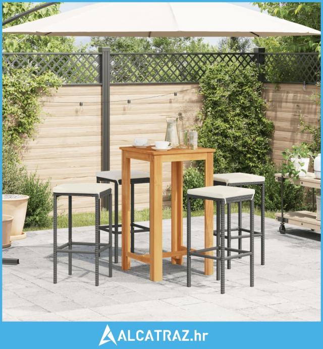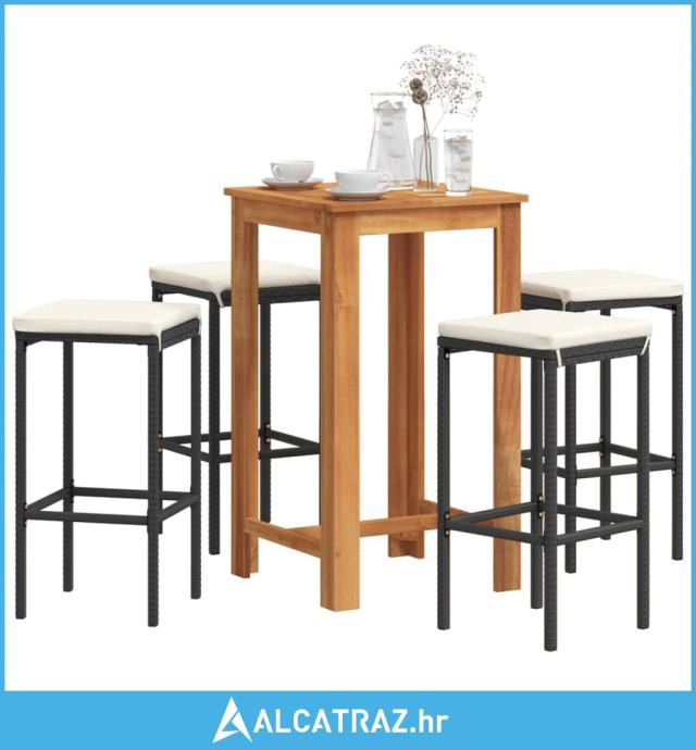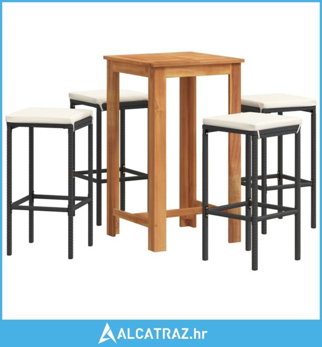 5-dijelni vrtni barski set crni od drva bagrema i poliratana - NOVO