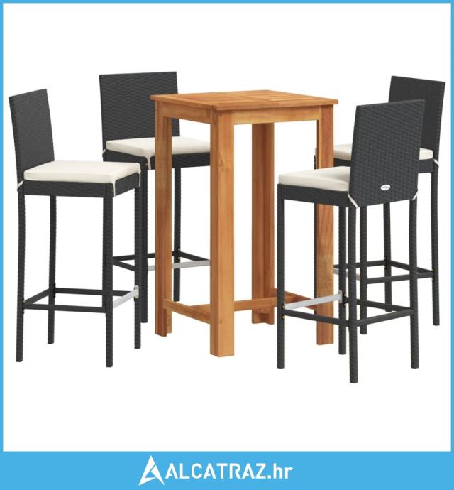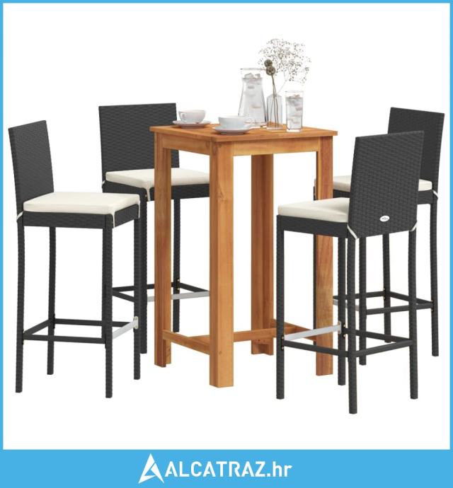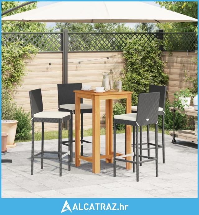 5-dijelni vrtni barski set crni od drva bagrema i poliratana - NOVO