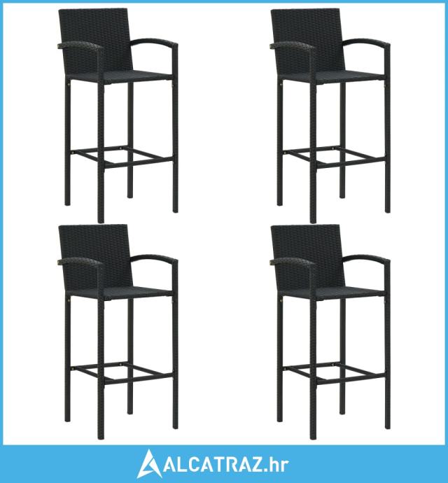 Barski stol poduprt je čeličnim okvirom obloženim prahom, zbog čega je stabilan i čvrst. Okrugla stolna ploča idealna je za postavljanje pića, hrane ili nekih ukrasnih predmeta. Stolci imaju snažnu konstrukciju od čeličnog okvira i napravljeni su od PE ratana otpornog na vremenske utjecaje, što osigurava stabilnost i lako pomicanje. Oslonac za noge također daje dodatnu udobnost sjedenju na stolcu.